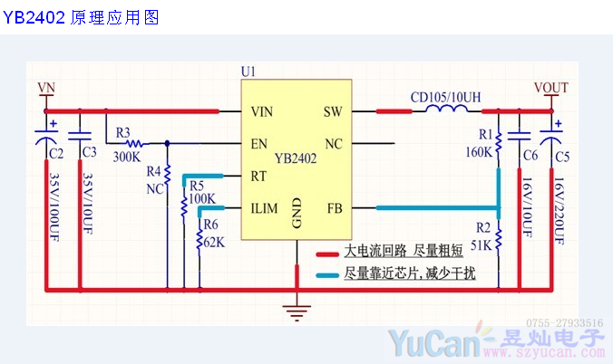 | 1.電感及輸出電容、反饋電阻要盡最大可能接近IC各功能引腳,減少線路引起的損耗. | |||||||||